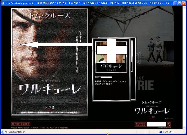 5000人の顔をモザイクしたトムの顔の矢印の部分にJerichoちゃんが