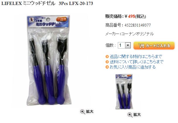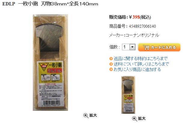 鉋(かんな)とウッドヂゼル(のみ)を買った。