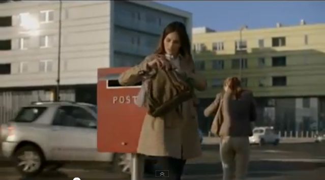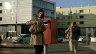 ポストに手紙を投函する女性に目を奪われがちだが、