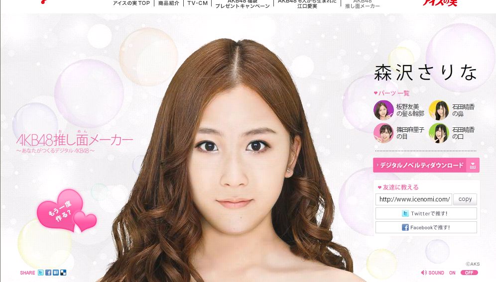 ここには「AKB推し面メイカー」という機能があり、AKBのメンバーの各パーツを組み合わせてオリジナルメンバーを作れるのだそうだ。