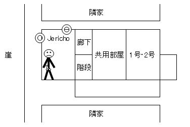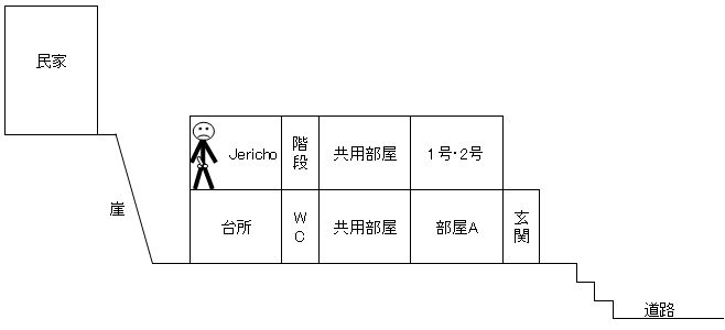 Jerichoが居る部屋は家の後側、つまり崖側。