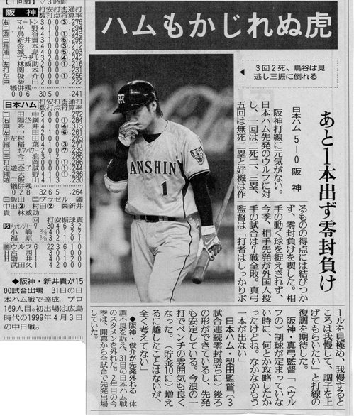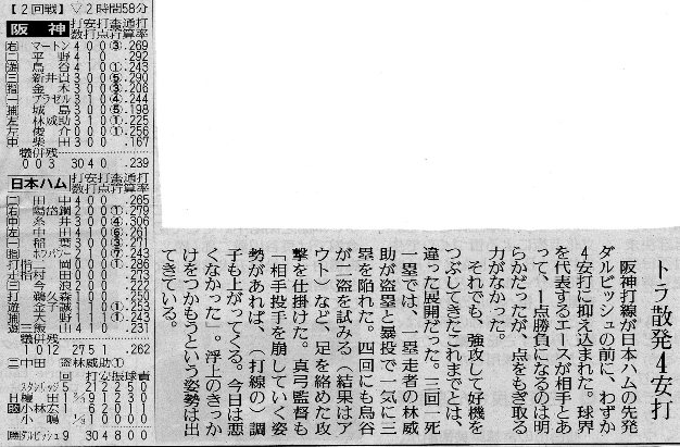 ただし負け試合でも「負けた」ことを大きく報じられており、見出しはあくまでも「阪神の負け」であり「日本ハムの勝ち」ではない。