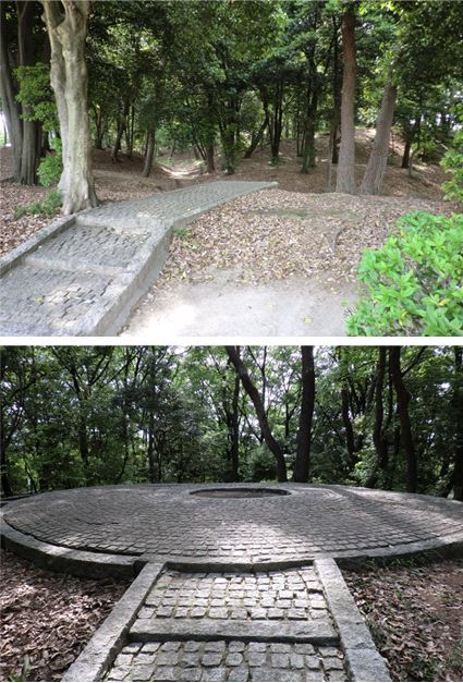 エンタープライズ号のように石を敷き詰めた、古墳の頂に出る。