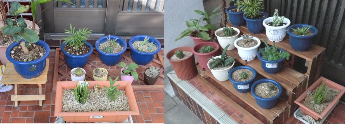 ①先日整えたサボテンコーナーに、プランターラックを造ろう