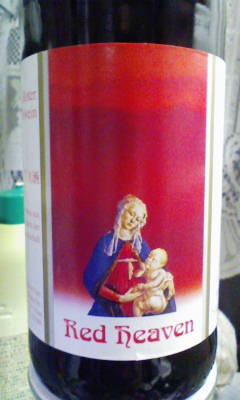 これは赤ワインだが、「Bule Heaven / ブルー・ヘヴン」を名乗る白ワインもあって、コイツは上半分真っ青。3流、イヤ、4流臭がプンプン漂うラベル・デザインであるね。名前もイカスね。「レッド・ヘヴン」w